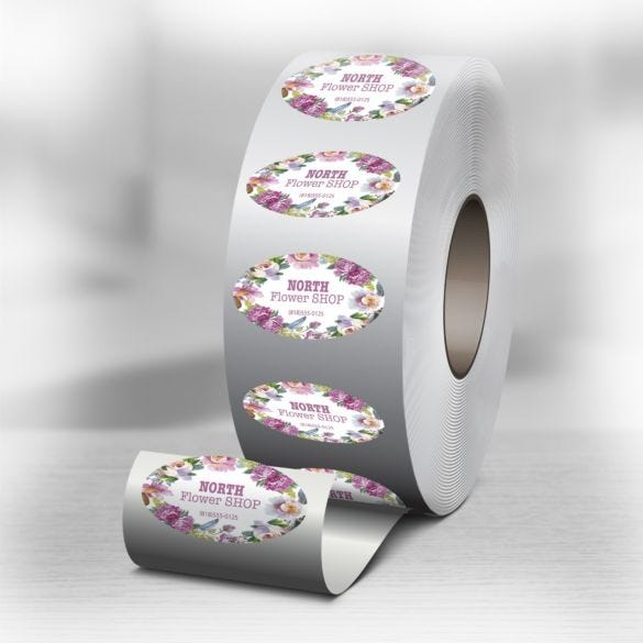 Bring elegance to packaging with full-color oval roll labels. These labels stick firmly to bottles, boxes, and other surfaces thanks to their strong adhesive backing, making them ideal for brand messaging and product presentation.