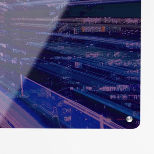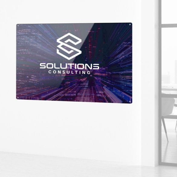 The result is a sleek, durable, glass-like finish that’s lightweight and weather-resistant. Ideal for wall art, galleries, interior signage, or corporate displays where a modern, polished look is desired.